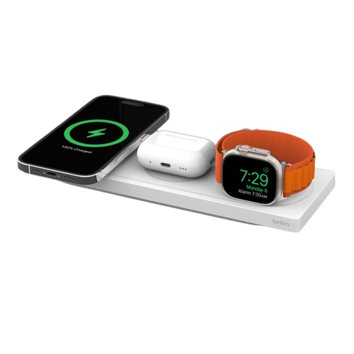 Belkin BoostCharge Pro 3-in-1 Wireless Charging Pad with MagSafe 15W - White (WIZ016AUWH), Flat & Compact Design, CEW $2,500, 2 Years Warranty